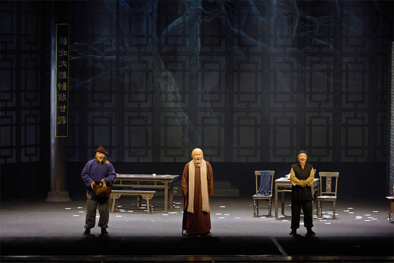 北京曲剧《茶馆》根据老舍同名话剧改编诚利和,讲述了老北京裕泰茶馆老板王利发一心希望苦心经营的茶馆兴旺发达,他八方应酬、改良革新,然而严酷的现实却使他每每被嘲弄,最终被冷酷无情的社会所吞没。