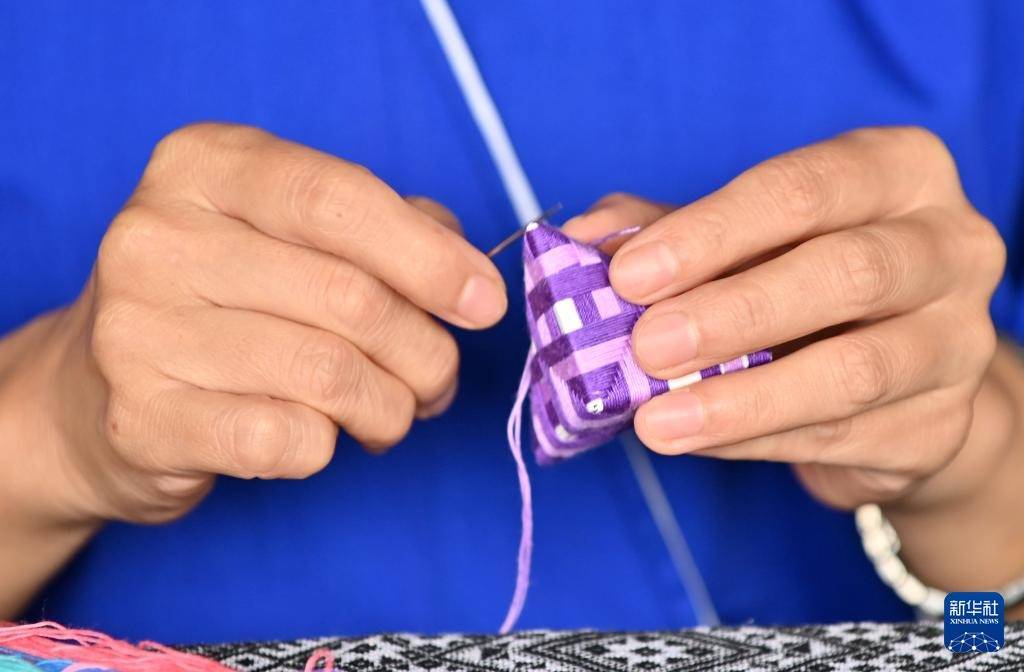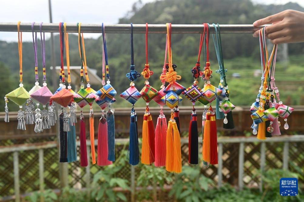 r侗族吉祥花是广西三江侗族自治县的传统手工艺品,由心灵手巧的侗族女性一丝一线编织而成,融侗族印染、刺绣、织锦等技艺于一体,最早用来悬挂在风雨桥、鼓楼等公共建筑中,是祈求风调雨顺的吉祥饰品,其制作技艺列入柳州市非物质文化遗产代表性项目名录。近年来,广西三江积极研发文旅产品,侗族吉祥花从传统的公共建筑挂饰变成人们身上的寻常饰品,日益热销文旅市场。